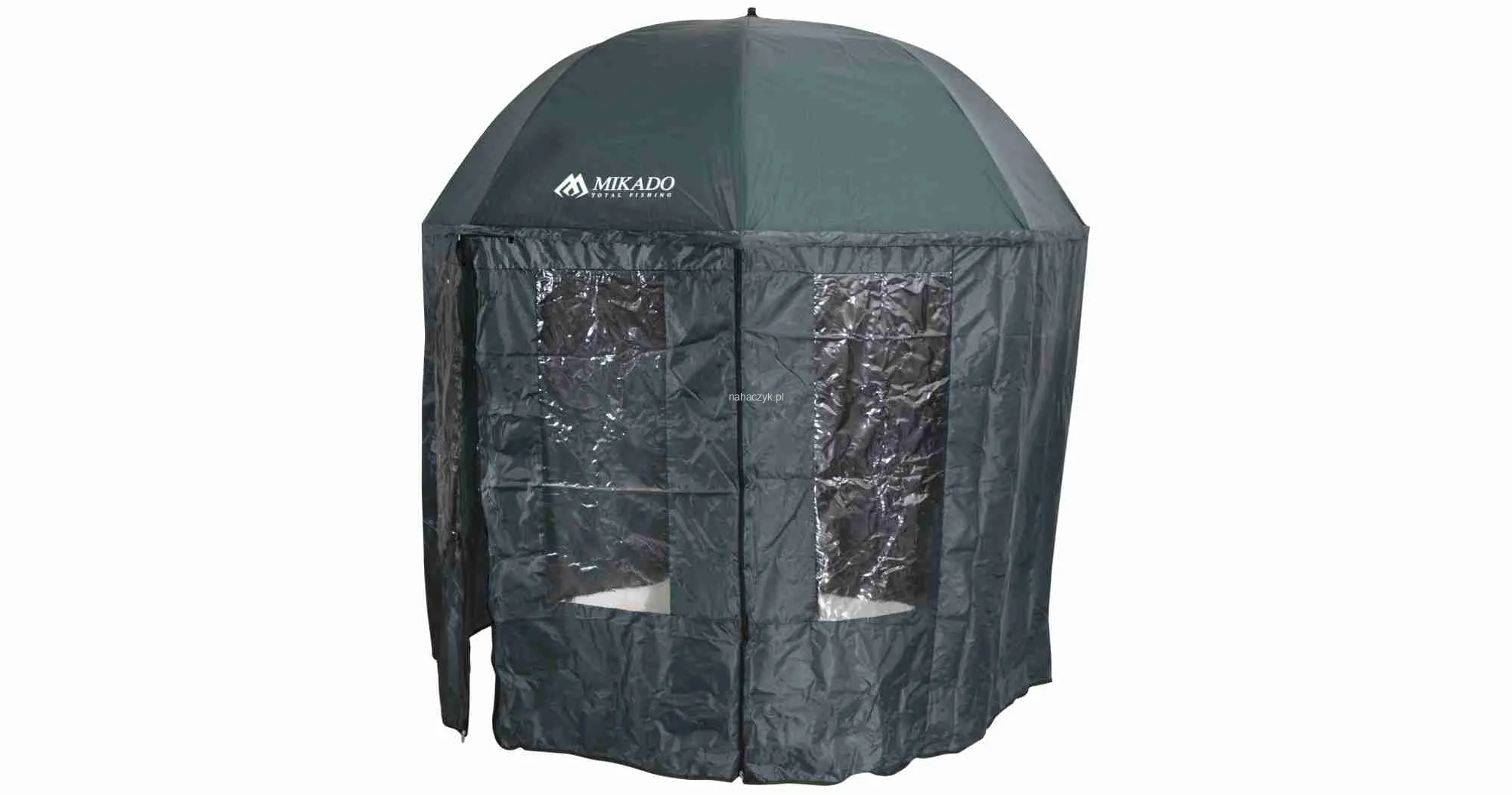 Świetny parasol wykonany z mocnego PVC, wyposażony w ścianki boczne z przezroczystymi oknami. Skutecznie chroni przed każdym deszczem i palącym słońcem, a duża 250cm czasza zapewnia wygodę nawet kilku wędkarzom.