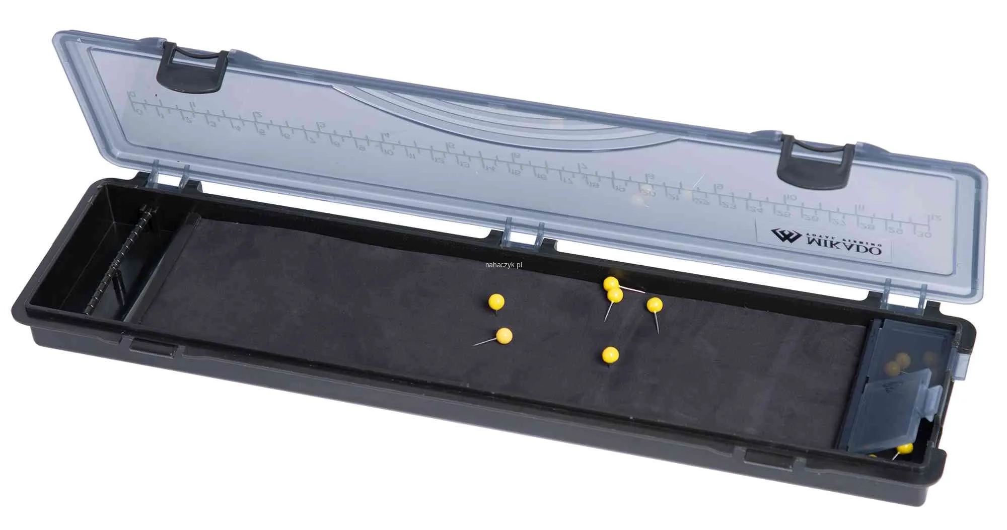 Świetnej jakości pudełko na przypony karpiowe, wyposażone w specjalną piankę i szpilki ułatwiające przechowywanie gotowych zestawów