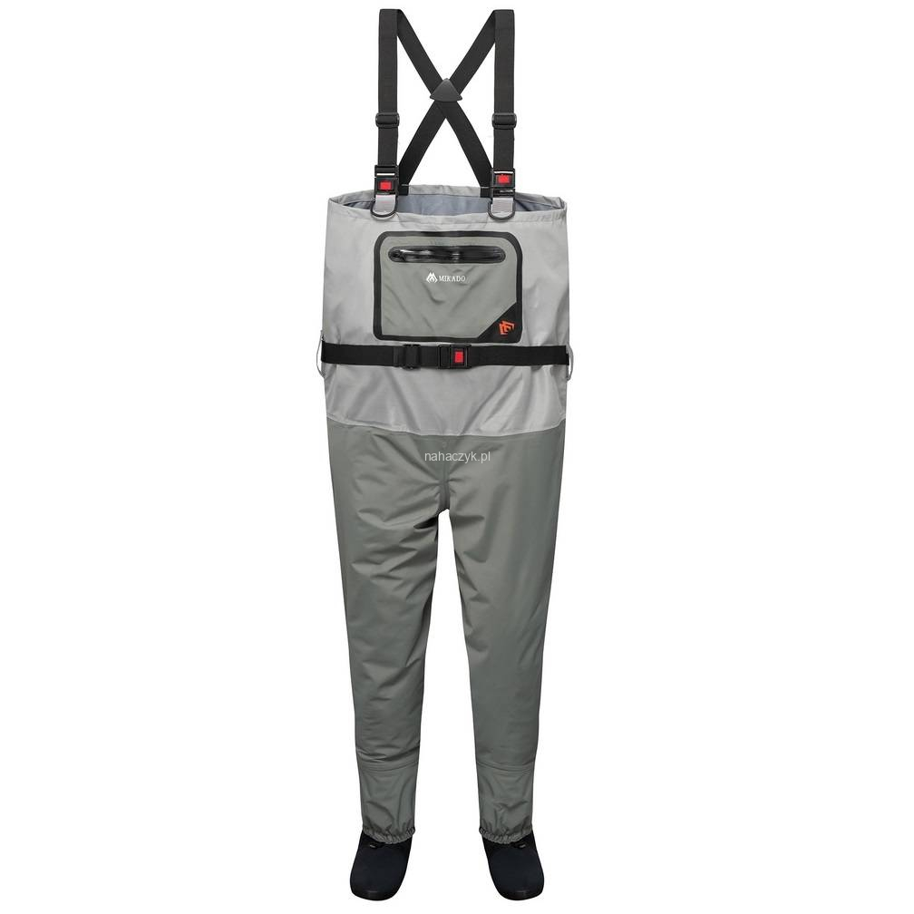 Spodniobuty oddychające MIKADO są produktem, obok którego nie przejdą obojętnie najbardziej wymagający wędkarze. Mocny materiał, wygodny krój, duże kieszenie, trwała skarpeta oraz praktyczne detale czynią z nich niezwykle wartościowy i atrakcyjny produkt.