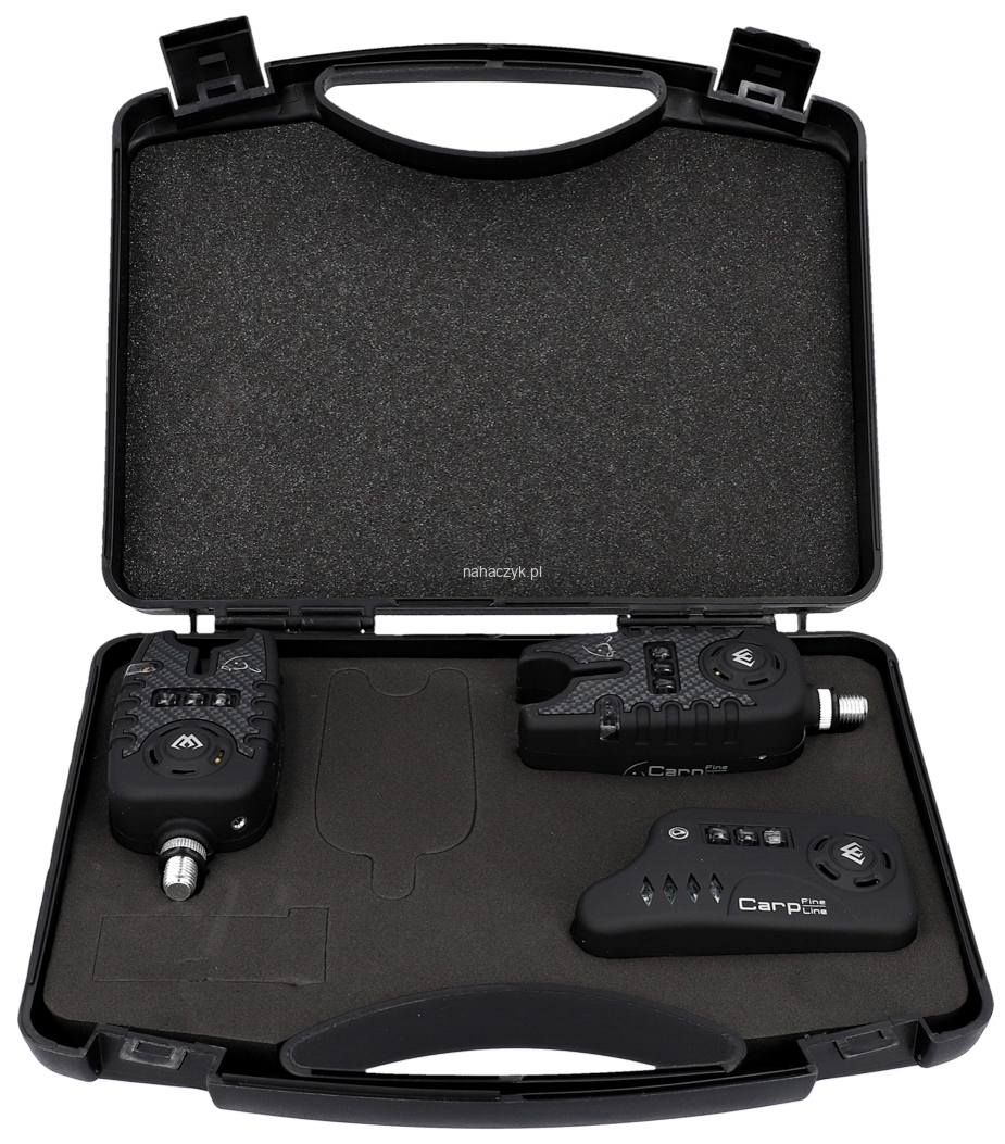 Zestaw elektronicznych sygnalizatorów karpiowych z centralką. Każdy sygnalizator wyposażony jest w regulację głośności, tonów i czułości, oraz wyjście mini jack dla podświetlanego swingera lub mocnego głośnika. Gwarantowany zasięg centralki wyposażonej w opcję wibracji to 150m.