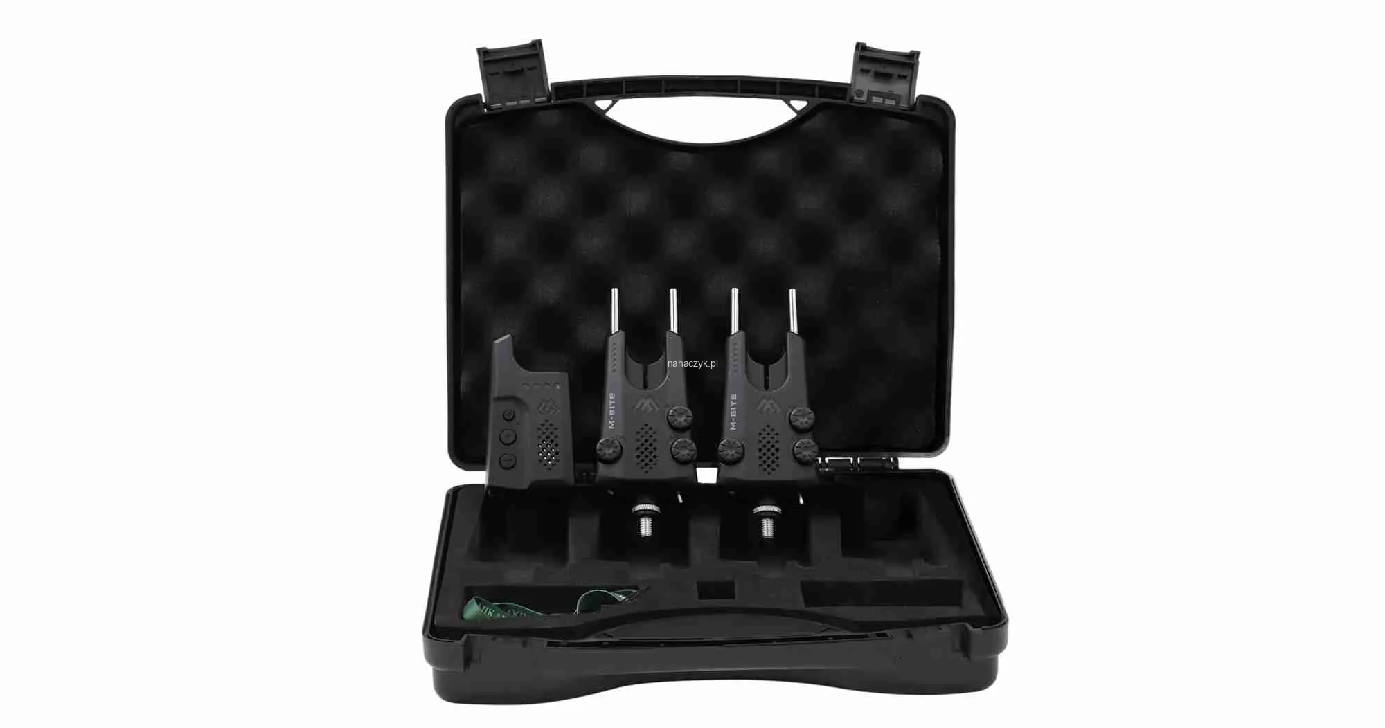 M-Bite to najwyższej klasy sygnalizatory karpiowe dostępne w komplecie z bezprzewodową centralką. Wyposażone w unikalny system sygnalizacji wizualnej, za pomocą podświetlanego logo na przodzie obudowy i płynnie działającą linijkę diod LED. M-Bite’y posiadają 6stopniową regulację głośności, czułości oraz tonu za pomocą praktycznych pokręteł, wyjście na podświetlany swinger oraz wkręcane snag earsy. Wraz z centralką zapewniają bezprzewodową transmisję sygnału 1:1 oraz całkiem imponujący zasięg do około 200m.