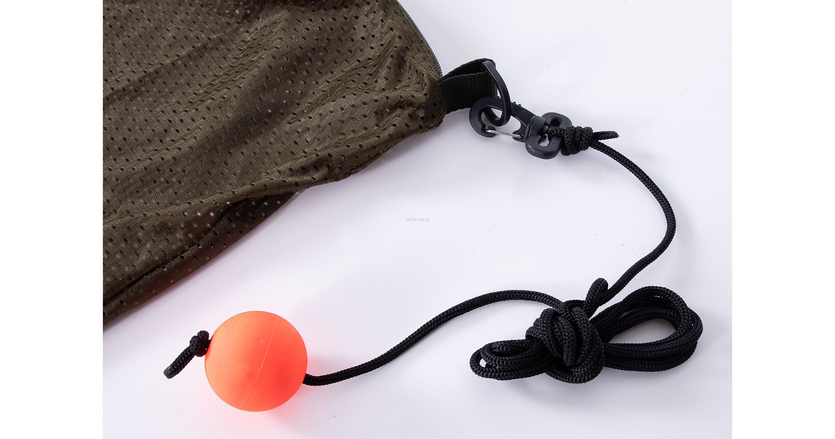 Wysokiej klasy, duży worek do przetrzymywania złowionych karpi. Wykonany z miękkiej, przyjaznej rybom siatki, wzmocnionej pasami, wykończonej niezawodnym suwakiem. W komplecie z wodoszczelnym workiem transportowym i pływakiem na sznurku.
