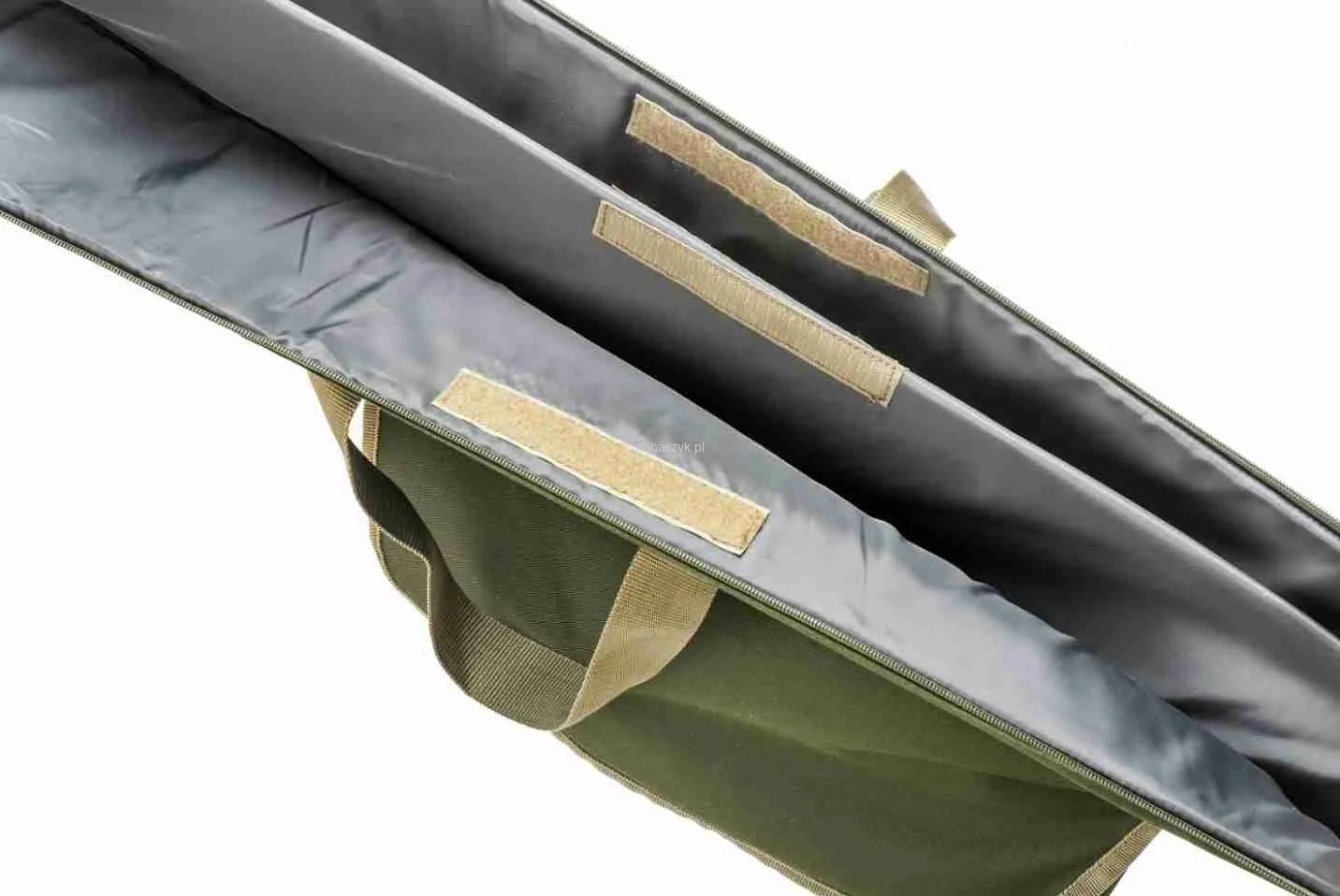 Pokrowiec, który pomieści dwie uzbrojone wędki o długości 12ft, wykonany z wysokiej klasy materiałów. Posiada przekładkę wewnętrzną, która zapobiega wzajemnemu uderzaniu o siebie umieszczonych wewnątrz wędek oraz grubą wyściółkę zabezpieczającą je wewnątrz. Pokrowiec posiada zgrubienie, które umożliwi transport wędek z przelotką startową 50mm, która w dzisiejszych wędkach jest niemalże standardem. Wygodne uchwyty i pasek transportowy z regulacją a do tego zewnętrzne rzepy, które umożliwią transportowanie np. podbieraka czy worka do ważenia to kolejne udogodnienia w tym pokrowcu. Wykończony w kolorze zieleni ze wstawkami kamuflaży Mivardi CamoCode.