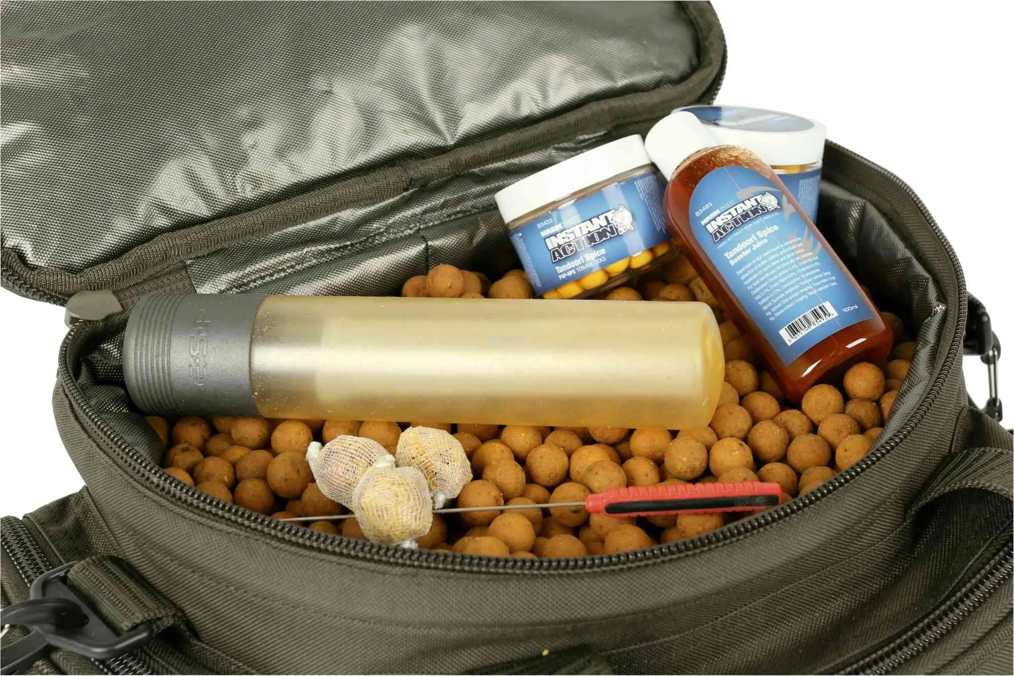 Główna, izolowana przegroda mieści 8 kilogramów kulek, pop-upy i saszetki D-Pouches