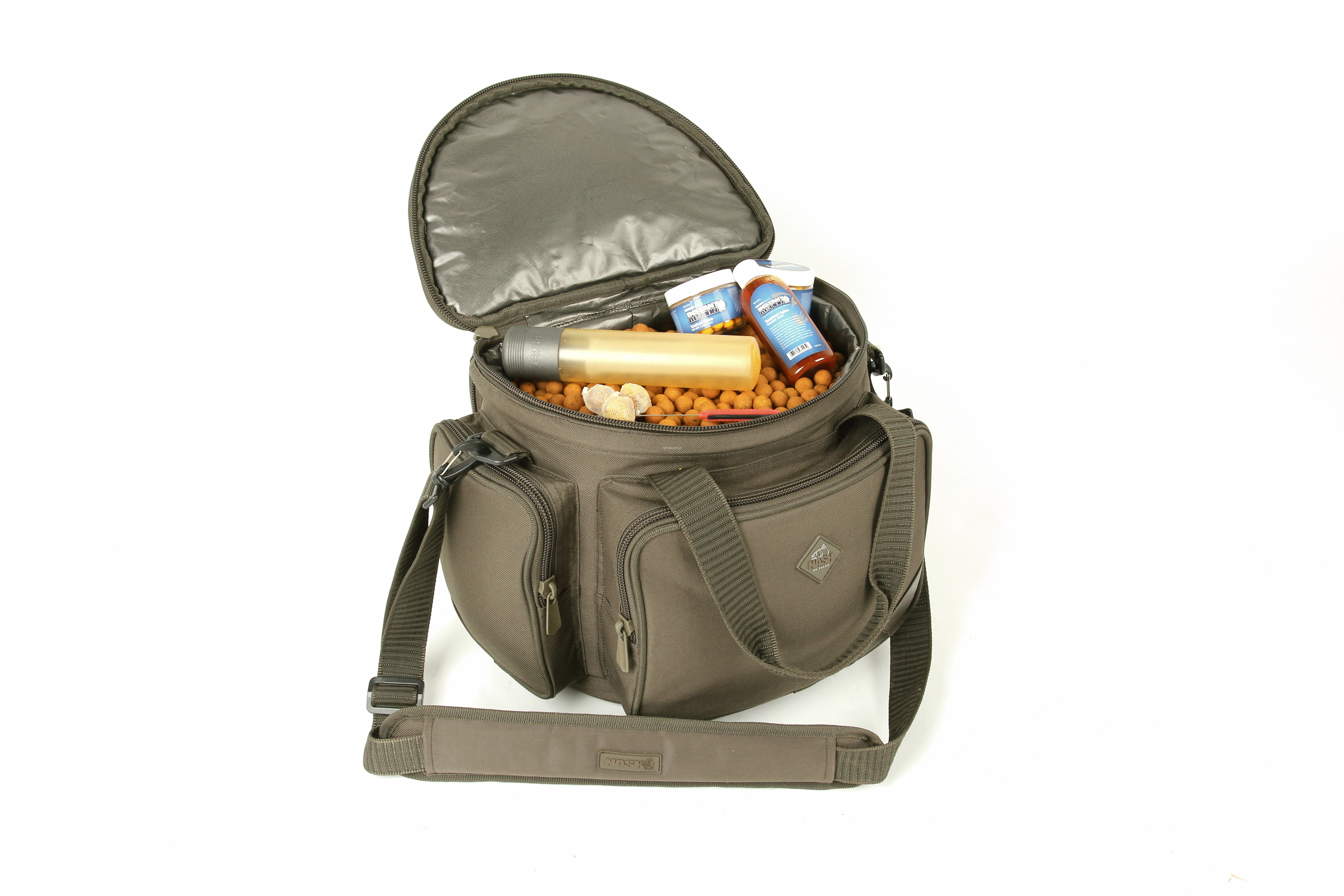 Nowoczesna wersja oryginalnego pomysłu Kevina sprzed wielu lat. Bait Mate to torba pozwalająca mobilnemu wędkarzowi szybko i efektywnie przynieść przynęty nad wodę I zanęcić łowisko przed wędkowaniem. Mieści w sobie masę przynęt, procę, PVA, słoiczki z dipami, pop-upami, akcesoria do wykonywania zestawów itp. Nieodzowna rzecz dla zorganizowanego wędkarza.