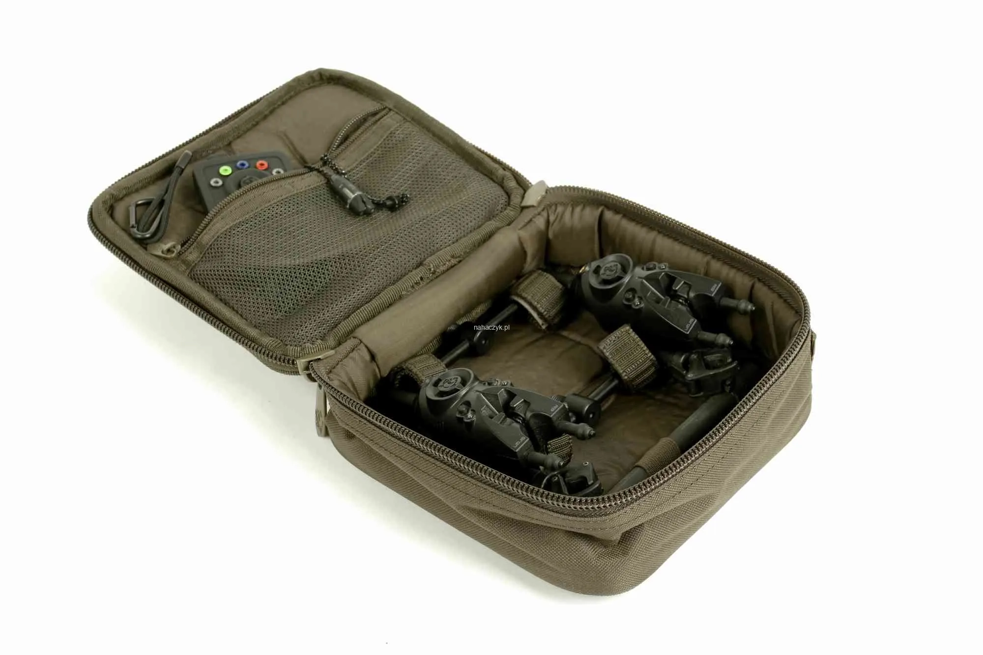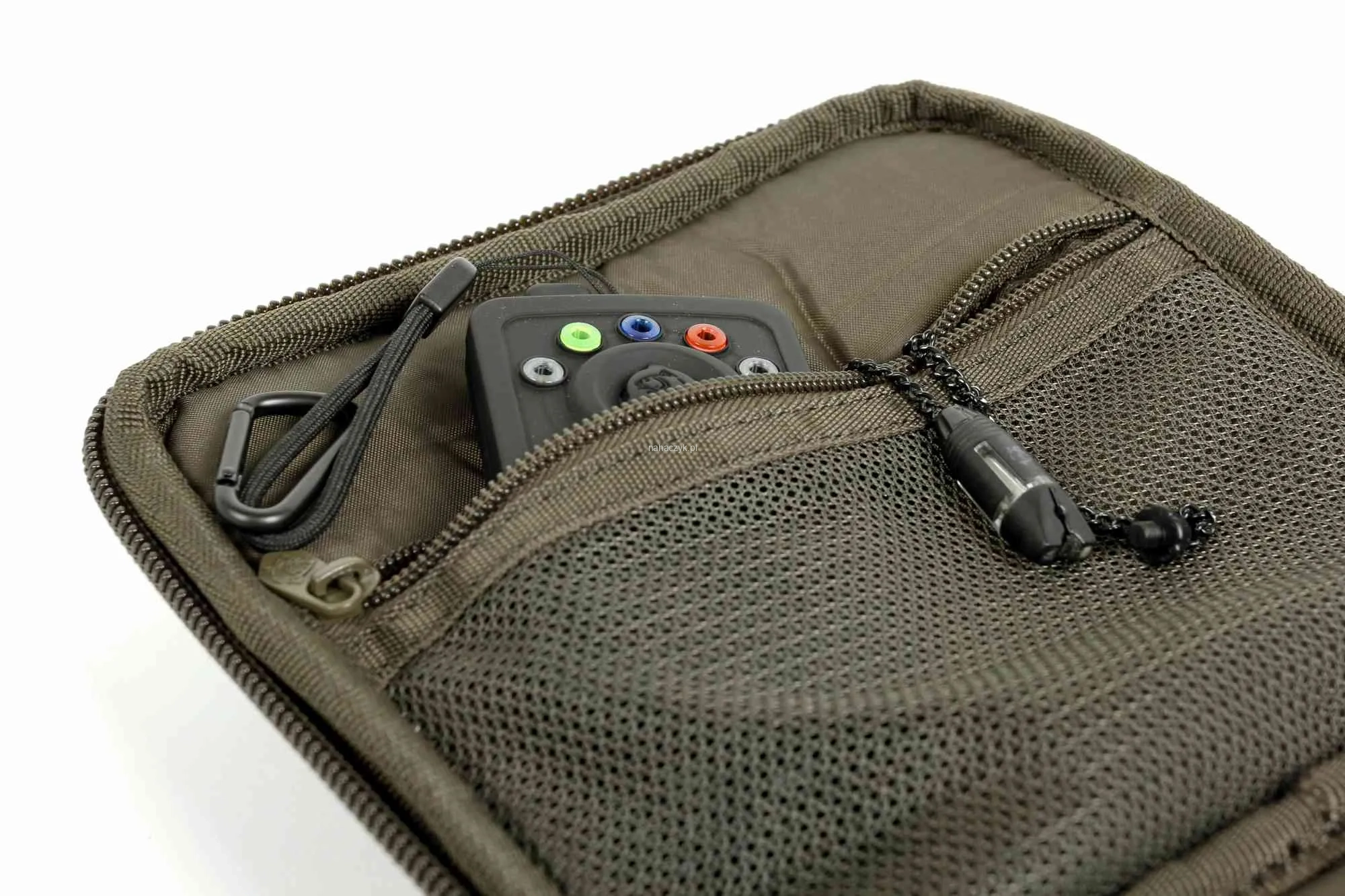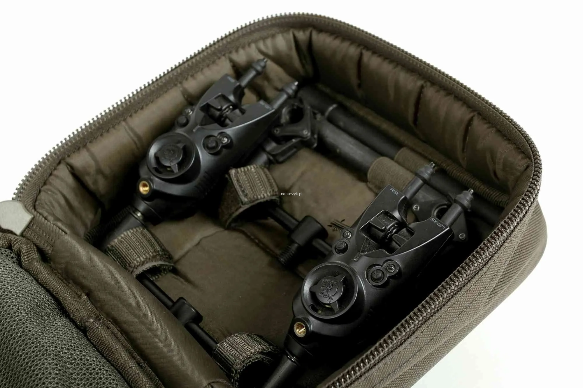 Mocna, zapinana na zamek torba do przechowywania buzz barów i sygnalizatorów w suchy i bezpieczny sposób. Elastyczne pętle przechowają dwie 22cm podpórki, a sygnalizatory mechaniczne znajdą miejsce w zapinanej na zamek kieszonce. Możesz także przechować w niej centralkę do sygnalizatorów. Posiada wodoodporną bazę i zamszowy uchwyt do transportowania.