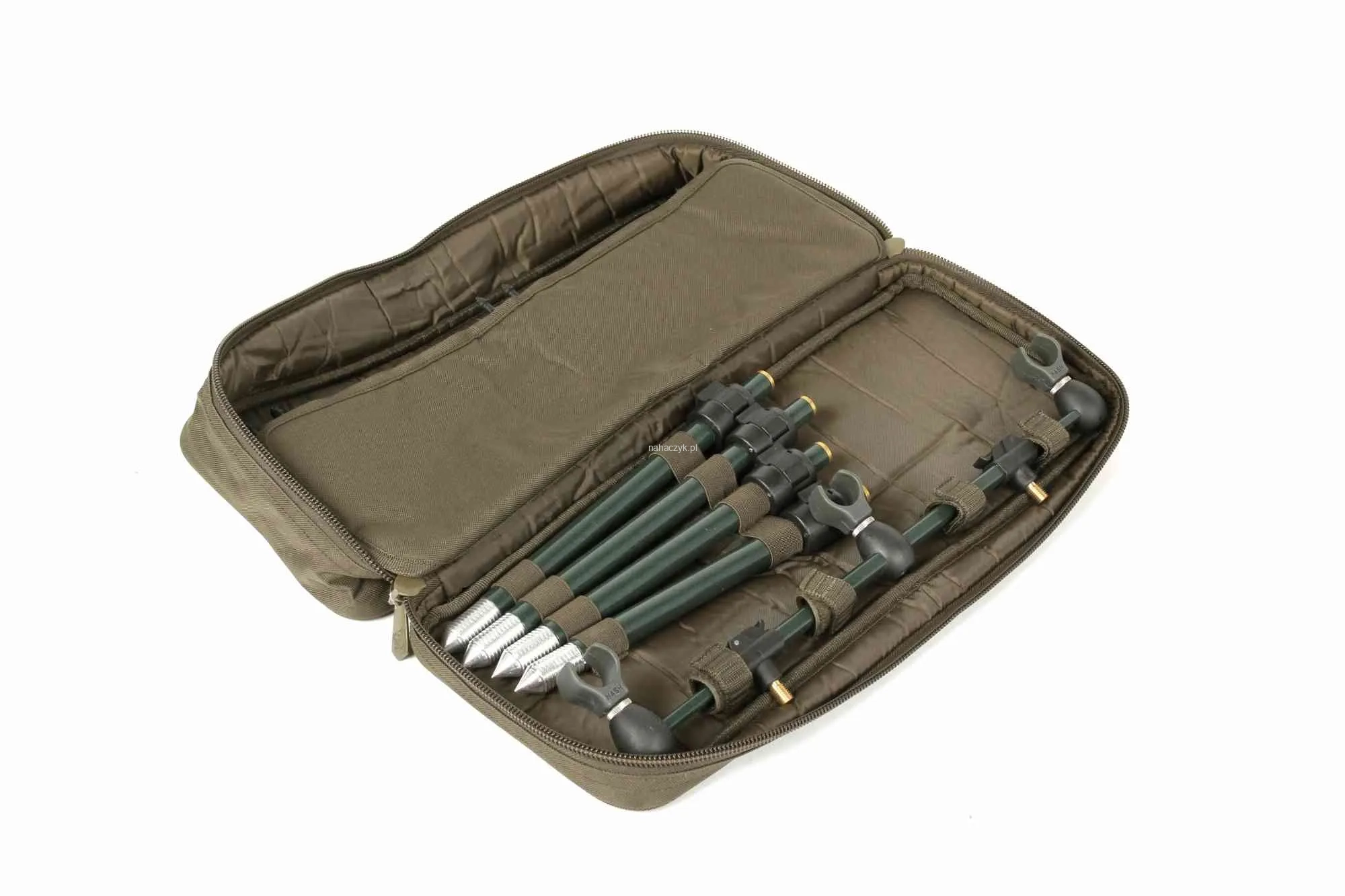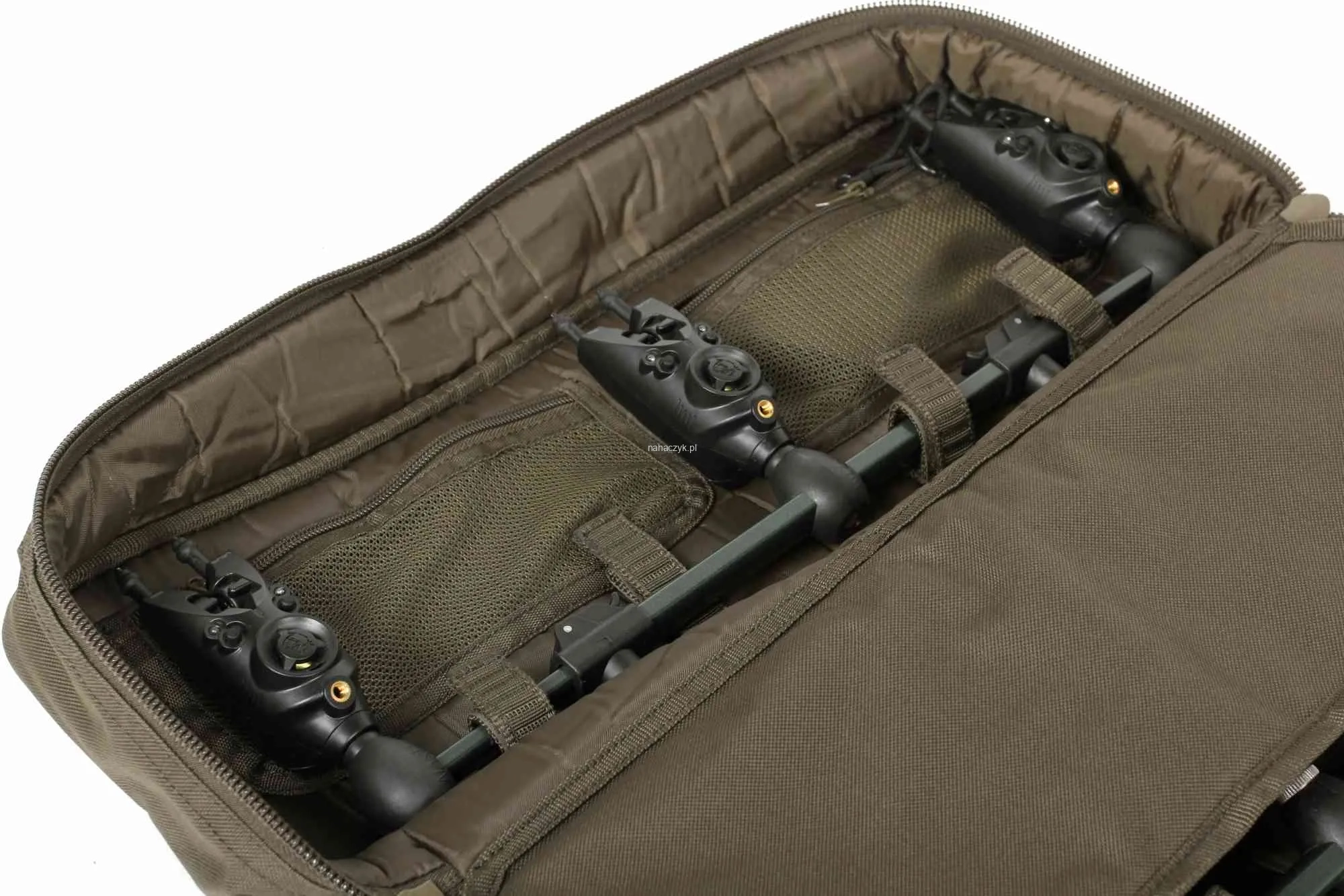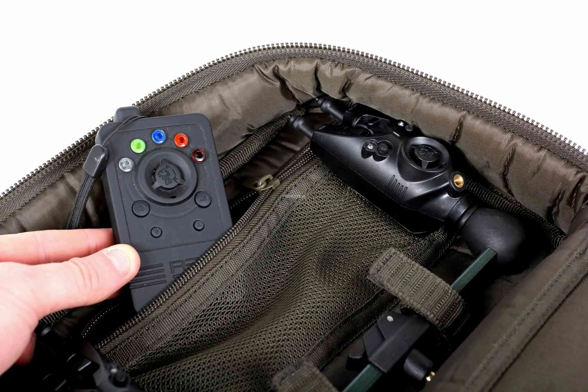 Mocna, zapinana na zamek torba do przechowywania buzz barów i sygnalizatorów w suchy i bezpieczny sposób. Elastyczne pętle przechowają dwie 38cm podpórki, a sygnalizatory mechaniczne znajdą miejsce w zapinanej na zamek kieszonce. Możesz także przechować w niej centralkę do sygnalizatorów. Posiada wodoodporną bazę i zamszowy uchwyt do transportowania.
