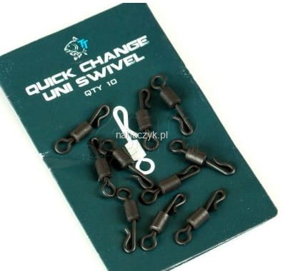 Bardzo mocny krętlik posiadający system szybkiej wymiany zestawu końcowego, kompatybilny ze wszystkimi rodzajami przyponów.