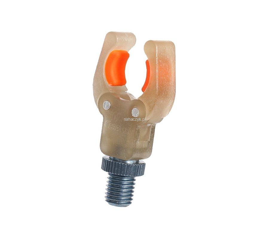 Podpórka zaciskowa (Butt Grip) z gwintem aluminiowym oraz z aluminiową nakrętką kontrującą. Butt grip posiada zaciskające się mocowanie / uchwyt wędki. Widoczne na zdjęciu pomarańczowe wstawi są wykonane z miękkiej gumy aby zapobiec porysowaniu blanku wędziska.