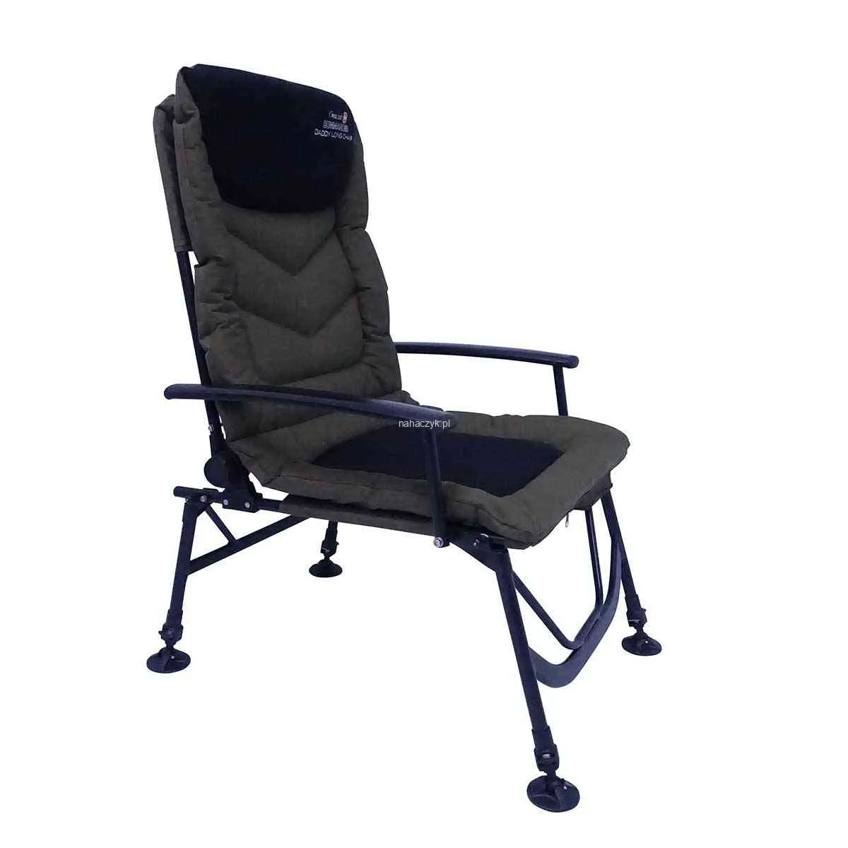 Idealny wybór dla karpiarzy, którzy cenią komfort bez kompromisów. Krzesło posiada wysokie uchylane oparcie i długie nogi oraz poduszkę z miękkiego neoprenu. Oddychające wyścielenie z przyjemną w dotyku siatką. Obrotowe stopki o powiększonej powierzchni, wygodne podłokietniki. Wodoodporny i oddychający materiał środkowej części siedziska. Zewnętrzna część siedziska w kamuflażu MCP.