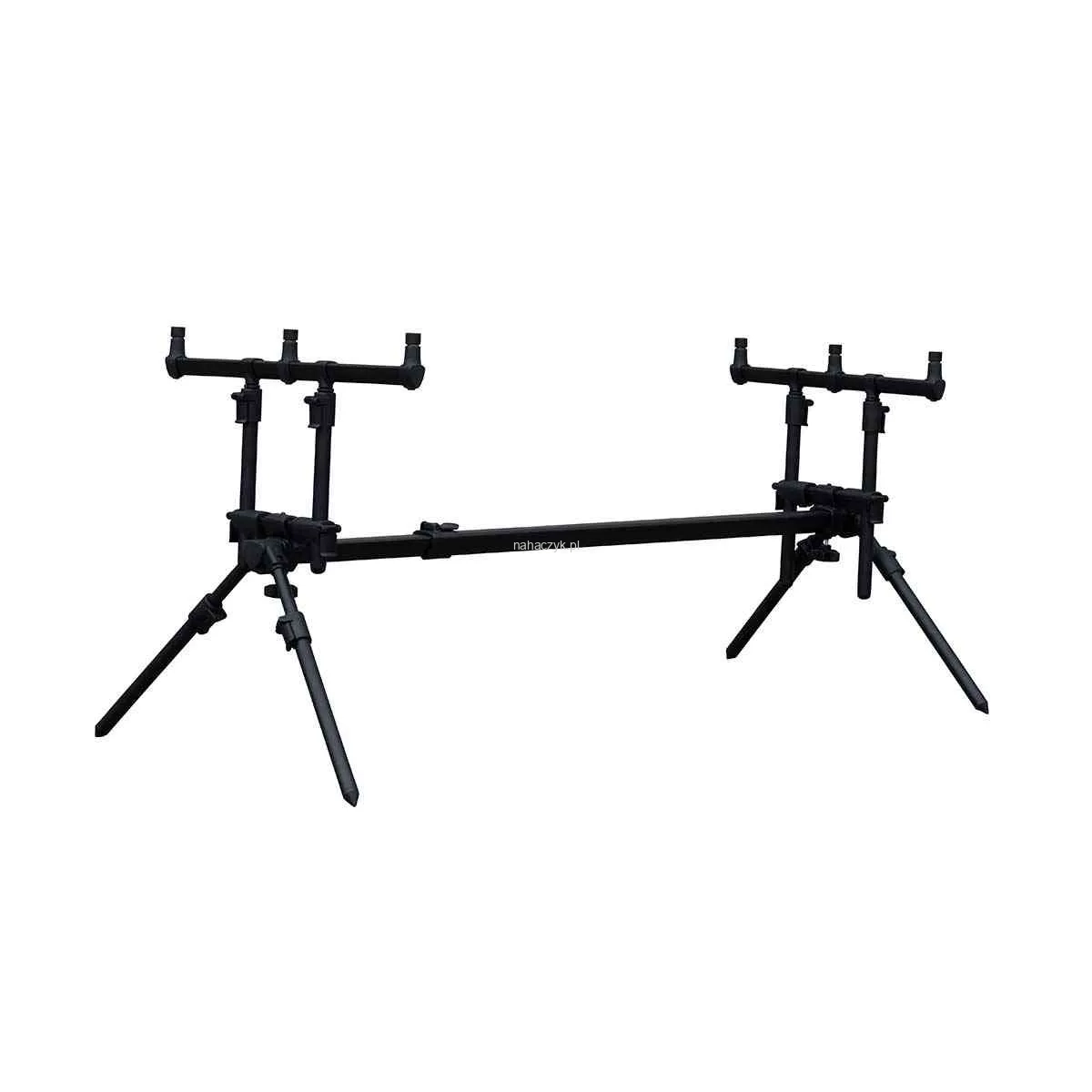 Pod na 3 wędki. Posiada solidną, trójkątną ramę główną, regulowane