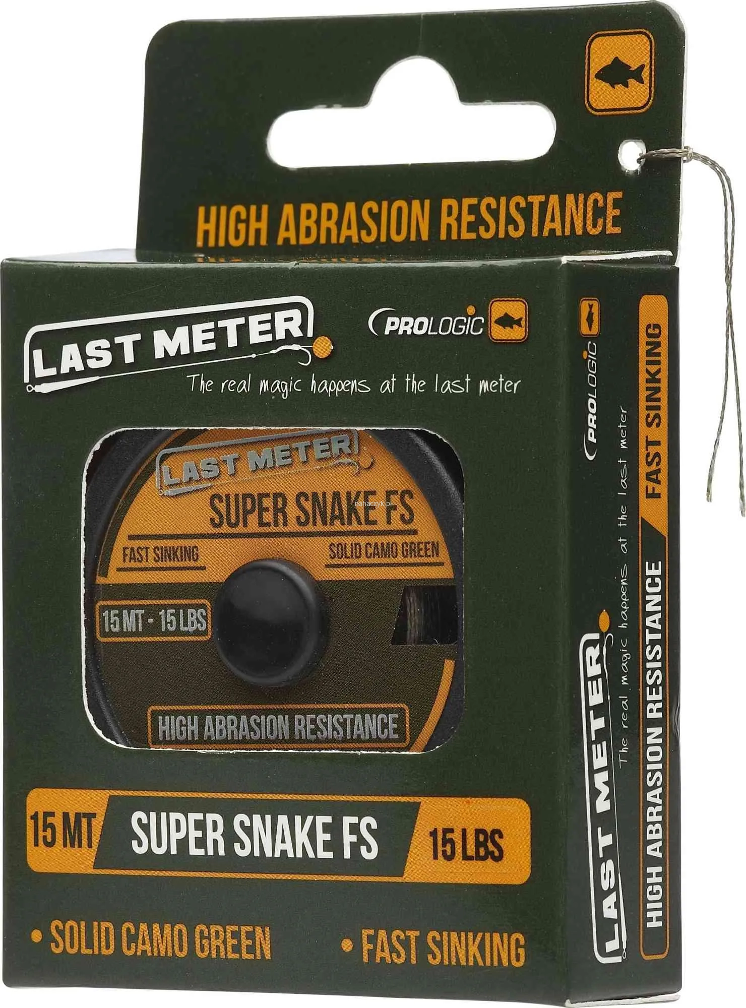 Ekstremalna pelcionka na ekstremalne warunki, SUPER SNAKE FS wykorzystuje włókna: Aramidowe i PTFE. Te dwa materiały zostały zaplecione ze sobą, by stworzyć plecionkę super odporną na przetarcia. Dzięki wysokiej gęstości użytych tu włókien plecionka tonie o 15% szybciej od nylonowej żyłki, zaś matowe wykończenie zapewnia najlepszy kamufl aż w wodzie, bez refl eksów świetlnych. Najwyższa odporność na przetarcia na rynku