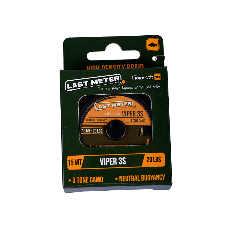 Włókna o wysokiej gęstości zaplecione ze specjalnymi włóknami PE, ze specjalną obróbką zmniejszającą tarcie. Ten proces sprawia, że materiał VIPER 3S jest szybko tonący i ma wysoką odporność na przetarcia. Ponieważ nie jest zbyt miękki, jest on idealnym rozwiązaniem do łowienia długimi zestawami lub wszędzie tam, gdzie dyskretny zestaw musi sprostać zaczepom i kamieniom na dnie łowiska.