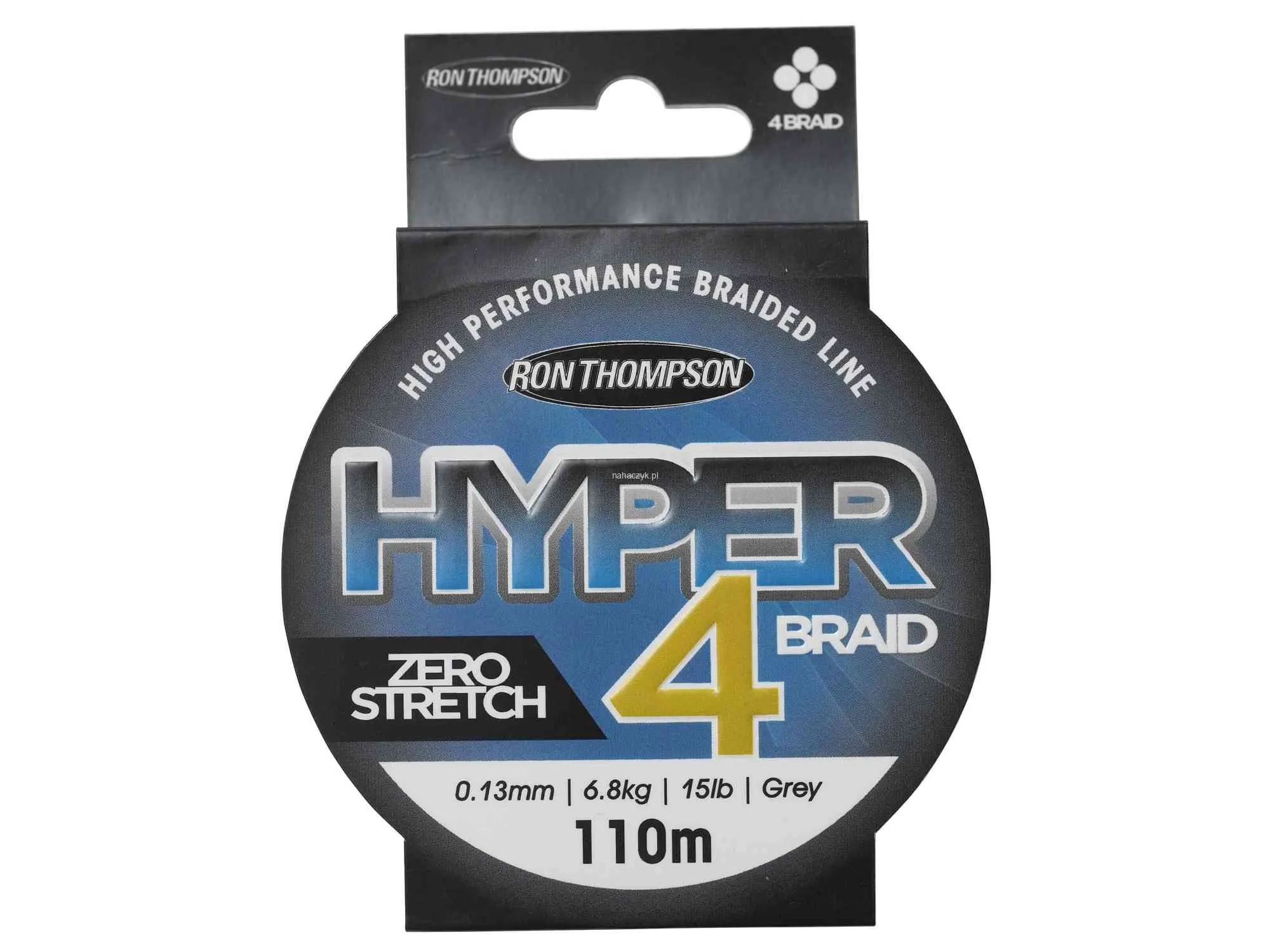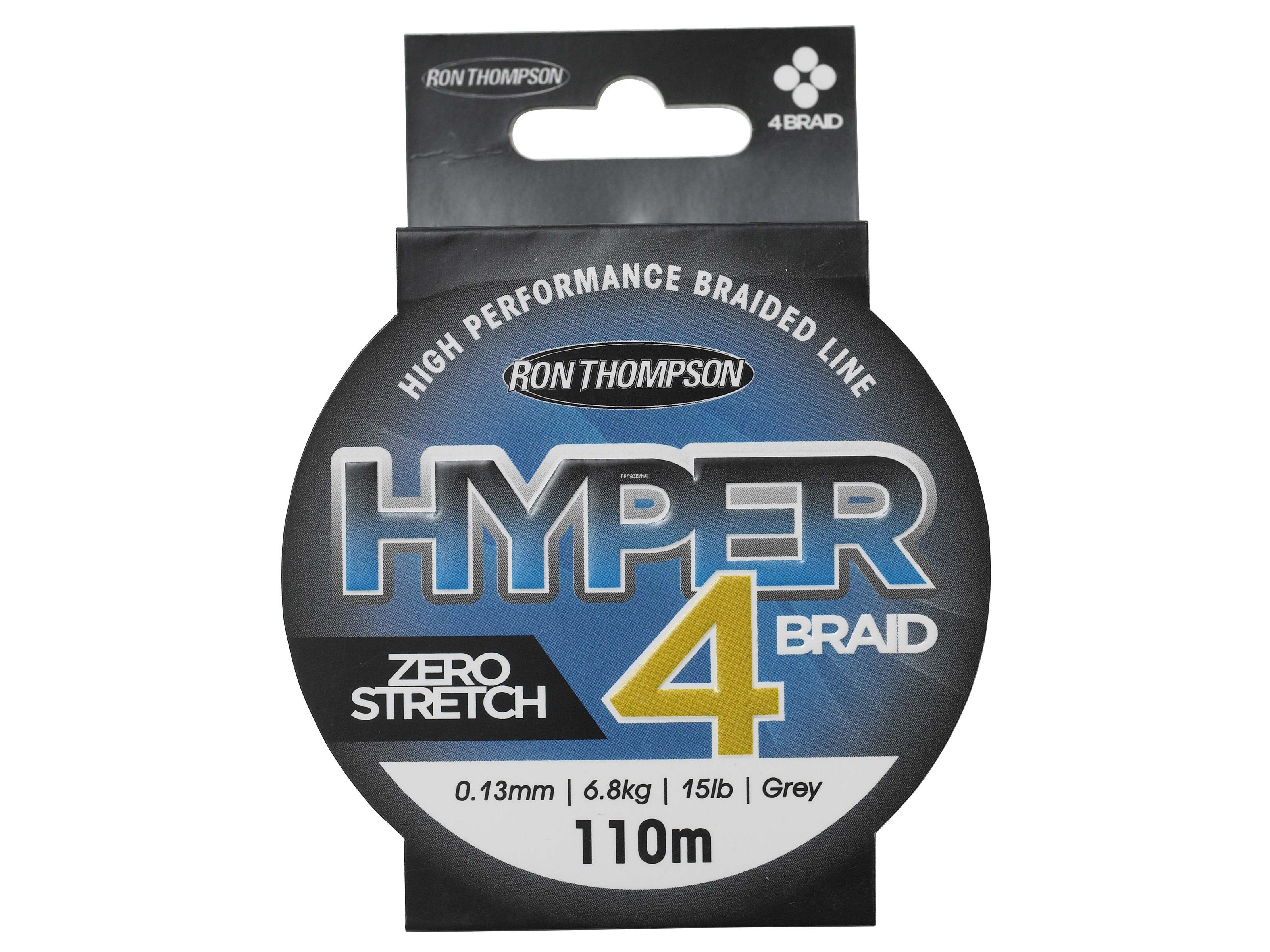 Plecionka 4-splotowa Ron Thompson Hyper 4-Braid w kolorze Grey (szarym) charakteryzuje się brakiem rozciągliwości, wysoką wzdłużną wytrzymałością i bardzo dobrą wytrzymałością na węźle oraz doskonałą odpornością na otarcia.