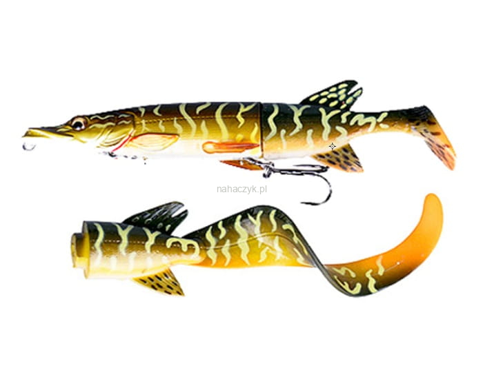 Super realistyczna imitacja małego szczupaka naładowana innowacjami Savage Gear. Skanowanie 3D zapewnia poziom detali dzięki którym nawet najostrożniejszy drapieżnik da się przechytrzyć i brutalnie zaatakuje przynęte. Ogon typu kopyto zapewnia kopiącą akcję która przenosi wibracje ba korpus w którym ukryta jest grzechotka która doprowadza drapieżniki do szału.