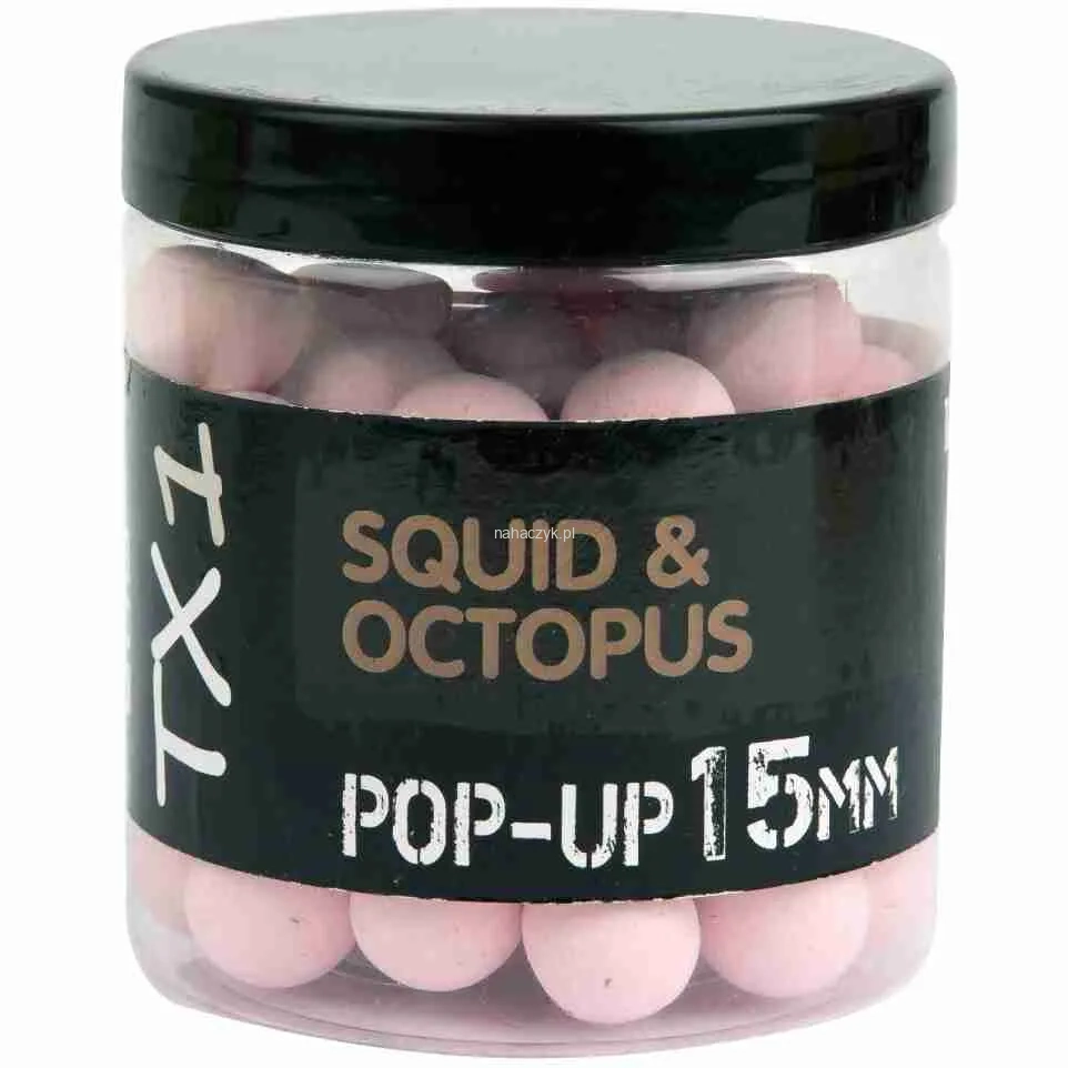 TX1 POP-UP to pływające kulki haczykowe, cechujące się dobrą wypornością, intensywnym kolorem oraz mocnym aromatem. Idealnie spiszą się jak pojedyncza przynęta lub w formie kulki balansującej zestaw w połączeniu z kulkami tonącymi. Smaki w ofercie pokrywają się z ofertą kulek zanętowych TX1, dzięki czemu znajdziemy tu zarówno owocowe, mięsne, jak i neutralne zapachy.