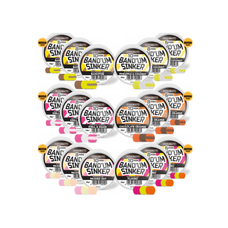 Przebudowana seria dumbellsów tonących z serii band’um. Na jej miejsce pojawiło się 18 modeli Sinkerów w atrakcyjnych zapachach i kolorach oraz 3 rozmiarach 6, 8, 10 mm