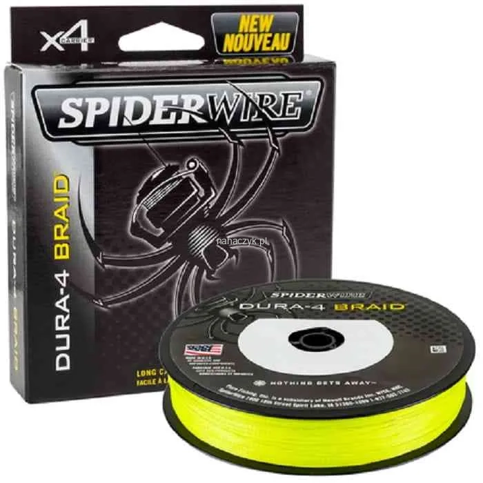Spiderwire Dura 4 jest klasyczną 4 splotową plecionką umożliwiającą długie i łatwe rzuty. Plecionka wykonana z włókien PE o 4 splotowej konstrukcji jest niezwykle mocna i bardzo trwała, o doskonałym stosunku wytrzymałości do średnicy. Dzięki niewiarygodnie gładkiej powłoce i konstrukcji plecionka jest zaprojektowana tak, aby przechodziła przez przelotki z łatwością co ułatwia długie rzuty. Dura 4 jest ultra cienka, mocna, nie rozciąga się i bardzo czuła w niezwykle przystępnej cenie, a dzięki zielonemu kolorowi charakteryzuje się niską widocznością.