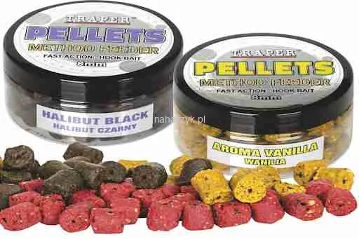TRAPER Hook Pellets Method Feeder 8mm - pellety haczykowe są jedną ze skuteczniejszych przynęt, stosowanych do metody włosowej jaki i Method Feeder. Bardzo wysoką skuteczność zyskały dzięki szybkiemu działaniu. W skład pelletu wchodzą naturalne mączki roślinne, zmielone frakcje skorupiaków i substancje zapachowe. Jego budowa - otwór wewnątrz pelletu oraz jego porowata powierzchnia, ułatwiają znacznie uwalnianie się cząstek i zwiększa emisję zapachów. Doskonale wchłania dipy.