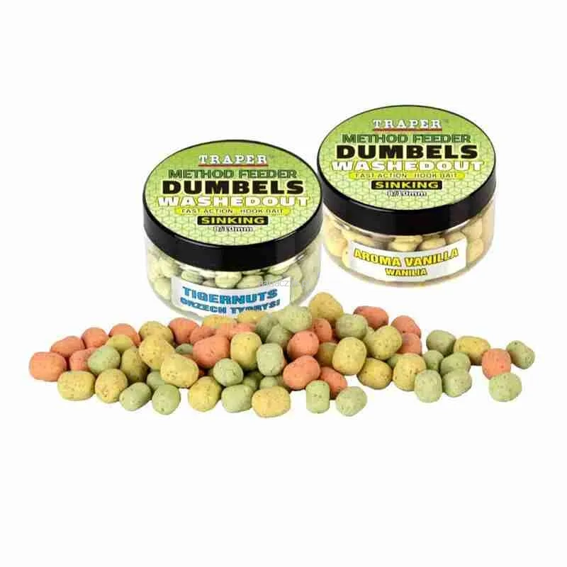 Tonąca formuła (sinking) sprawia, że przynęta osiada na dnie lub w jego pobliżu, co doskonale pasuje do metody feederowej, w której precyzyjne umiejscowienie przynęty w strefie przydennej jest kluczowe. Kształt dumbelsów pozwala na łatwy montaż za pomocą gumki na włosie, wkrętów lub klasycznych stoperów, co daje dużą elastyczność w stosowaniu różnych metod.