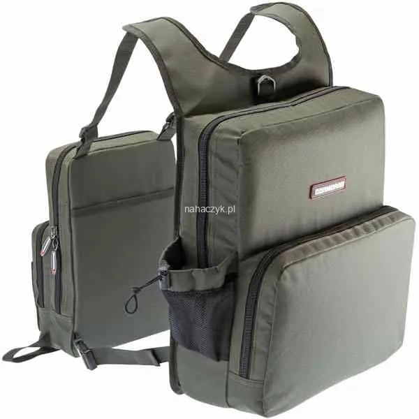 Idealne rozwiązanie dla spinningistów, którzy chcą móc koncentrować się tylko i wyłącznie na łowieniu. Ten podwójny plecak (połączone torby na plecach i klatce piersiowej) leży idealnie nawet na grubej kurtce i nie przeszkadza w żadnej sytuacji. Wszystkie pasy mocujące są regulowane i pozwalają idealnie go dopasować do sylwetki i ubioru wędkarza.