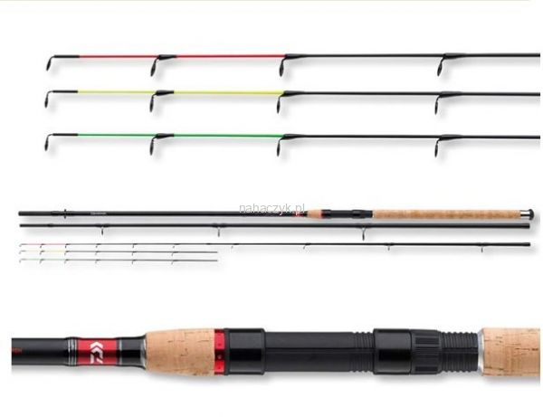 Wędka Daiwa Ninja X Heavy Feeder 3,90m 50-150g zbudowana została na cienkim i lekkim węglowym blanku. Cechuje sie dobrym wyważeniem i znaczną mocą dającą dużą swobodę w trakcie holu. Wyposażona w dwustopkowe przelotki Titanium Oxyd, dwie szczytówki węglowe i jedną szklaną o większych przelotkach umożliwiających stosowanie przyponów strzałowych, korkową rękojeść oraz futerał transportowy. Świetne wędzisko do połowu na metodę lub z użyciem tradycyjnych koszyków zanętowych.