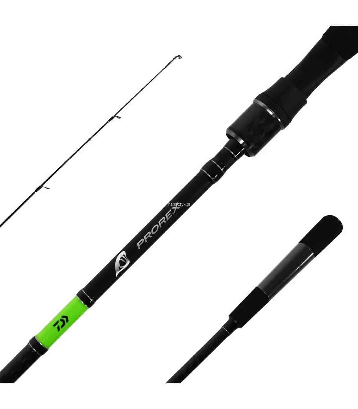 Wędki spinningowe Prorex są bardzo dobrze wyważone i przyjemne w użyciu. Akcja wędek Prorex X została dostosowana do specjalnych wymagań nowoczesnych technik spinningowych przy użyciu miękkich i twardych przynęt. Najwyższej jakości blank z włókna węglowego HMC+ zapewnia lekkość, szybką akcję i ogromne rezerwy mocy. Wysokiej jakości połączenia czopowe umożliwiają zaprojektowanie bardzo smukłego blanku, a tym samym znacznie poprawiają jego wyważenie. Oplot X-wrap wykonany z włókna węglowego na powierzchni blanku zwiększa jego stabilność i oferuje niezwykle atrakcyjny wygląd. Bardzo lekkie przelotki Seaguide z ceramicznymi wkładkami i specjalnymi ramkami zapobiegają splątaniu linki podczas wyrzutu, a ich niska waga znacząco przyczynia się do zwiększenia szybkości reakcji i doskonałego wyważenia wędki.