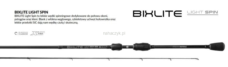 BIXLITE Light Spin to lekkie wędki spinningowe dedykowane do połowu okoni, pstrągów oraz kleni. Blank z włókna węglowego, szkieletowy uchwyt kołowrotka oraz lekkie przelotki SiC dają nam wędkę czułą i skuteczną.