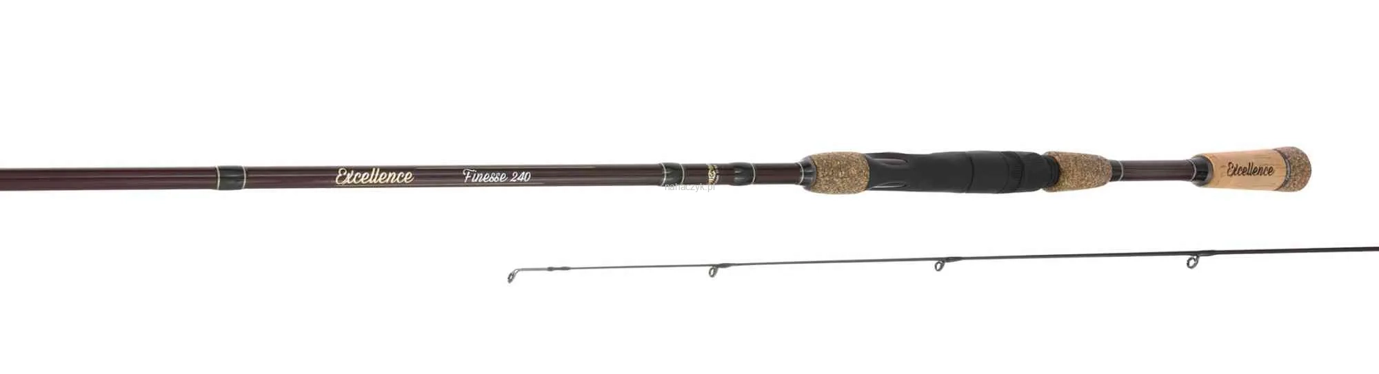Wędki Excellence Finesse zostały zaprojektowane z myślą o finezyjnym łowieniu drapieżników. Bardzo smukły i czuły blank z wysokomodułowego włókna węglowego wyposażony dodatkowo we wklejaną szczytówkę perfekcyjnie przekazuje nawet najdelikatniejsze skubnięcia ryb. Najwyższej klasy uchwyt ma w specjalne otwory poprawiające kontrolę podczas prowadzenia przynęty oraz bardzo wytrzymałe przelotki są gwarancją funkcjonalności podczas łowienia i pewności podczas holu. Kije te sprawdzą się doskonale do połowu okoni, czy drapieżnego białorybu jak wzdręgi czy klenie, ale i przyłów w postaci szczupaka czy sandacza im nie straszny. Długości zostały tak dobrane, aby zaspokoić potrzeby zarówno wędkarzy lubujących się w łowieniu ze środków pływających, jak i miłośników brzegowych eskapad