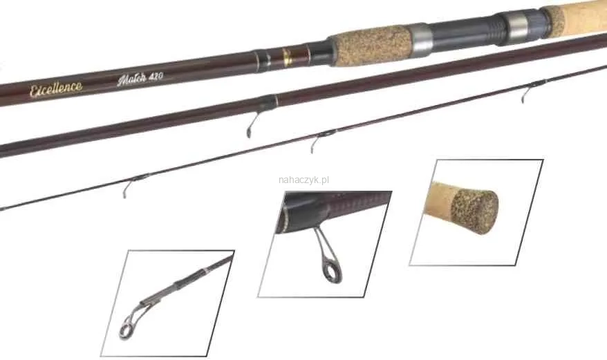 Excellence Match to wędka przeznaczona do metody odległościowej. Wysokomodułowy węgiel 24T nadaje wędce sprężystości i mocy przy zachowaniu niewielkiej wagi. Paraboliczna akcja pomaga w posłaniu nawet delikatnych zestawów na dalekie odległości oraz sprawne zacięcie ryby. Wszystkiego dopełnia blank utrzymany w eleganckiej, klasycznej stylistyce.