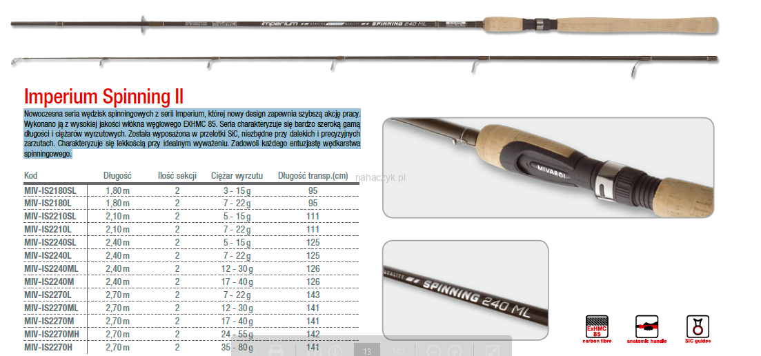 Nowoczesna seria wędzisk spinningowych z serii Imperium, której nowy design zapewnia szybszą akcję pracy. Wykonano ją z wysokiej jakości włókna węglowego EXHMC 85. Seria charakteryzuje się bardzo szeroką gamą długości i ciężarów wyrzutowych. Została wyposażona w przelotki SiC, niezbędne przy dalekich i precyzyjnych zarzutach. Charakteryzuje się lekkością przy idealnym wyważeniu. Zadowoli każdego entuzjastę wędkarstwa spinningowego.