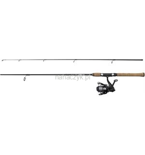 Wędzisko: • Wykonane z lekkiego włókna węglowego • Pełny uchwyt z korka • Wysokiej jakości mocowanie kołowrotka z wykładką amortyzującą • Wysokiej jakości przelotki SiC Kołowrotek: • Korpus i rotor z grafitu • Ażurowa konstrukcja rotora • Łożyska kulkowe 2+1 • Przedni hamulec o płynnej pracy • Aluminiowa szpula w 2 odcieniach • Przełożenie 5,1:1 • Nawinięte 110m 4-splotowej plecionki 0,17mm