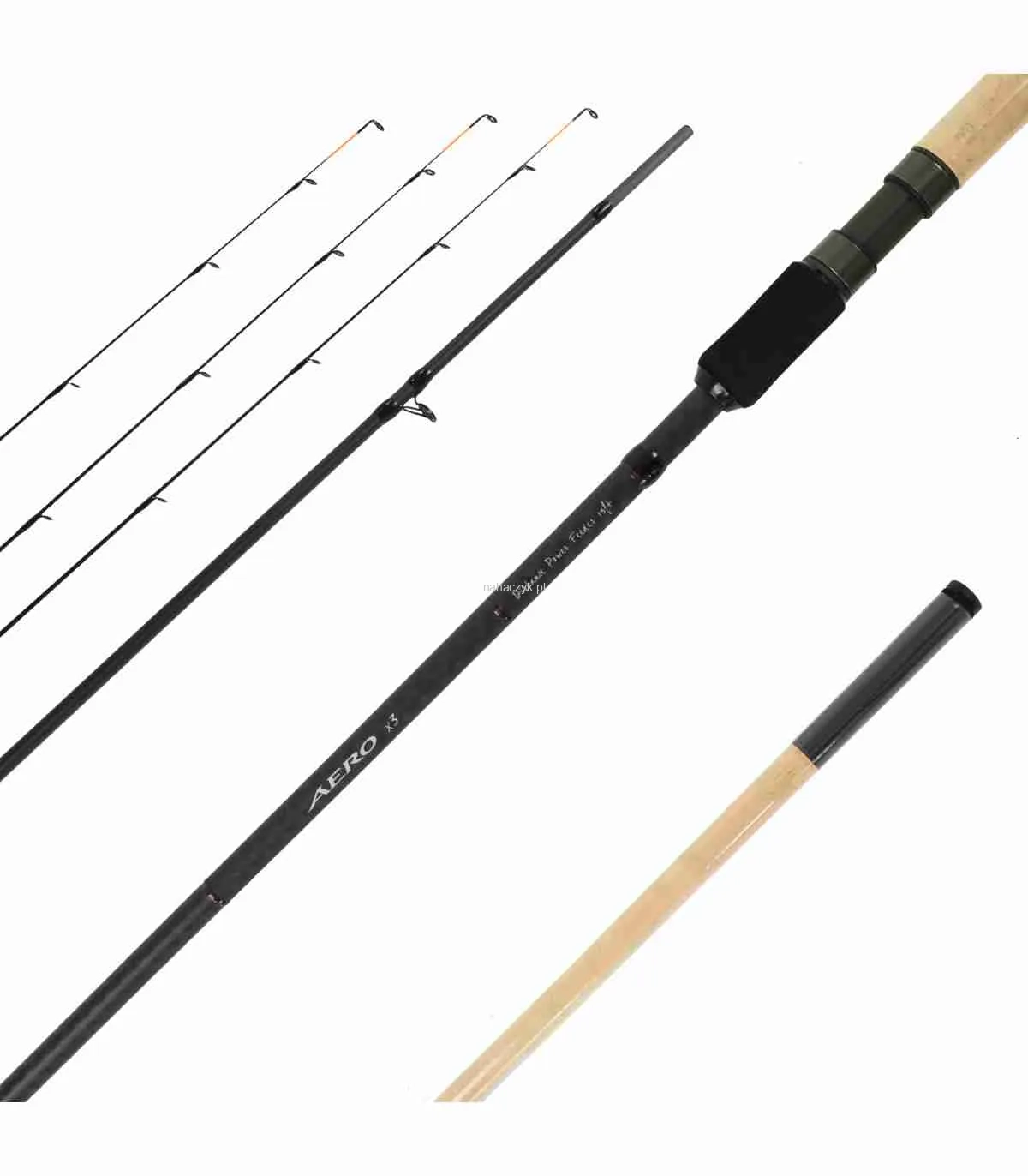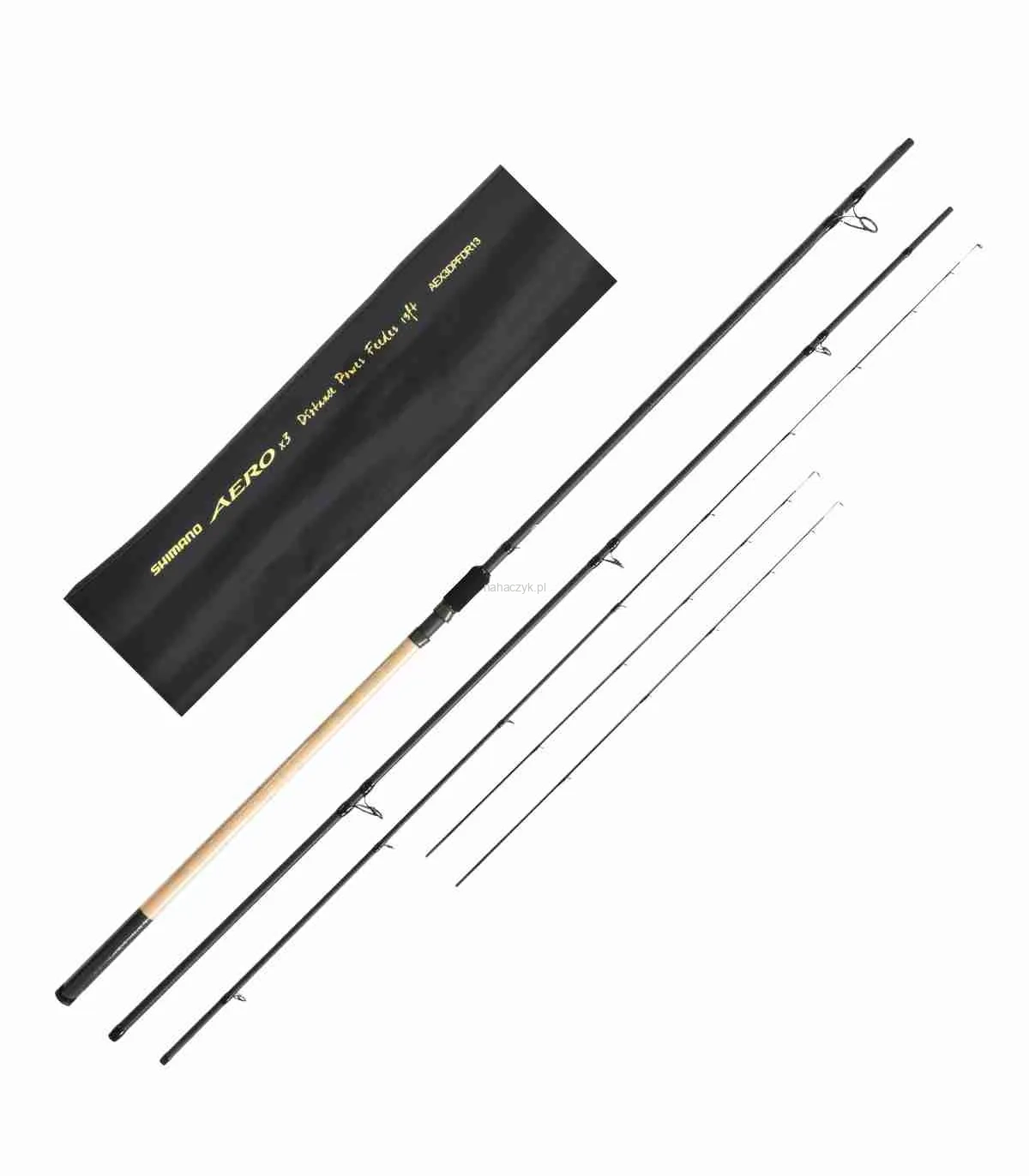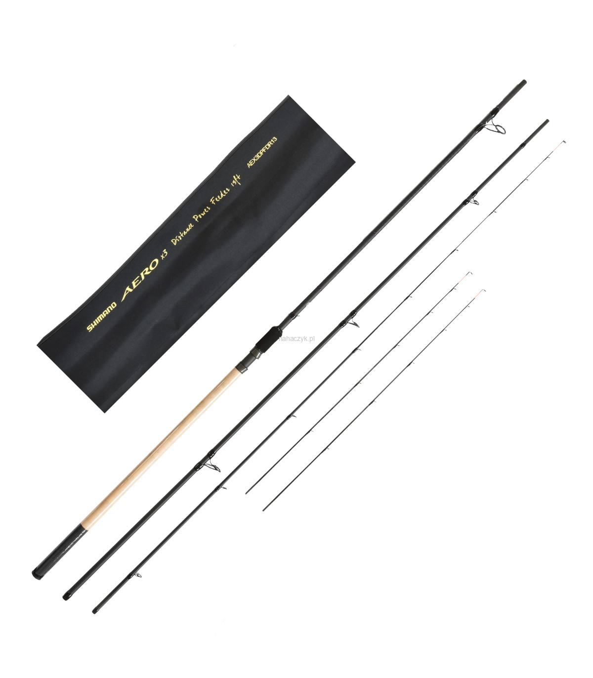 Seria wędzisk Shimano Aero X3 Feeder stanowi idealne uzupełnienie oferty z średnim segmencie cenowym, łącząc w sobie wszechstronność i wysoką jakość użytkową. To aż 8 modeli wędzisk odpowiednich do metody feeder, które spełnią oczekiwania najbardziej wymagających wędkarzy zarówno w kwestii pracy, jak i szeroko pojętej lekkości. Wszystkie wędziska Aero X3 zostały zbudowane w wysokim standardzie z wykorzystaniem najwyższej jakości komponentów, które perfekcyjnie uzupełniają smukłe, lekkie blanki o bezkonkurencyjnej pracy. Zbudowano je wykorzystując sprawdzone technologie w konstrukcji profesjonalnych wędzisk i uzbrojono w równie dobrej jakości komponenty. Wędziska Aero X3 zostały stworzone w oparciu o wysokomodułowy blank, wzmocniony w dolnej części technologią oplotu krzyżowego Diaflash, wykorzystującego oplot ze specjalnej taśmy carbonowej. Rozwiązanie to sprawia, że dolna część wędziska jest mniej podatna na ugięcie podczas holu, co daje większą kontrolę nad walczącą rybą i przyczynia się do większej precyzji podawania zestawu podczas rzutu. Oznacza to również większy “zapas mocy”, pozwalający lepiej załadować wędzisko, co w połączeniu z szybką częścią szczytową umożliwia osiąganie większych odległości rzutu. Wszystkie modele zostały wyposażone w wysokiej klasy komponenty, takie jak uchwyt kołowrotka Fuji DPS oraz lekkie i mocne, właściwe do stosowania żyłki i plecionki, przelotki Seaguide XOG. W serii Feeder znalazły się: 3 wędziska do lekkiej prezentacji zestawów na niewielkich stawach komercyjnych lub rzeczkach (Precision), 5 modeli do łowienia na dużych dystansach (Distance) w tym, dość uniwersalny, model o długości 12 stóp, oraz 14-stopowy model dedykowany do łowienia na największych dystansach, w tym również na dużych, nizinnych rzekach takich jak Wisła czy Odra.