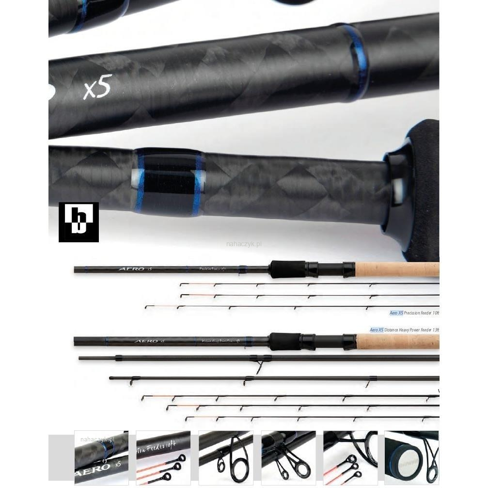 Wędka Shimano Aero X5 Distance Feeder 3,96m 90g - wszystkie wędziska SHIMANO z serii match oraz feeder, za sprawą swej uniwersalności, sprostają wymaganiom wędkarzy z całej Europy. Wraz z rosnącą popularnością feedera, urosła również rodzina wędzisk Shimano dedykowanych do tej metody, która sprawdza się w wielu okolicznościach, na każdej rzece, jeziorze, czy wodach komercyjnych.