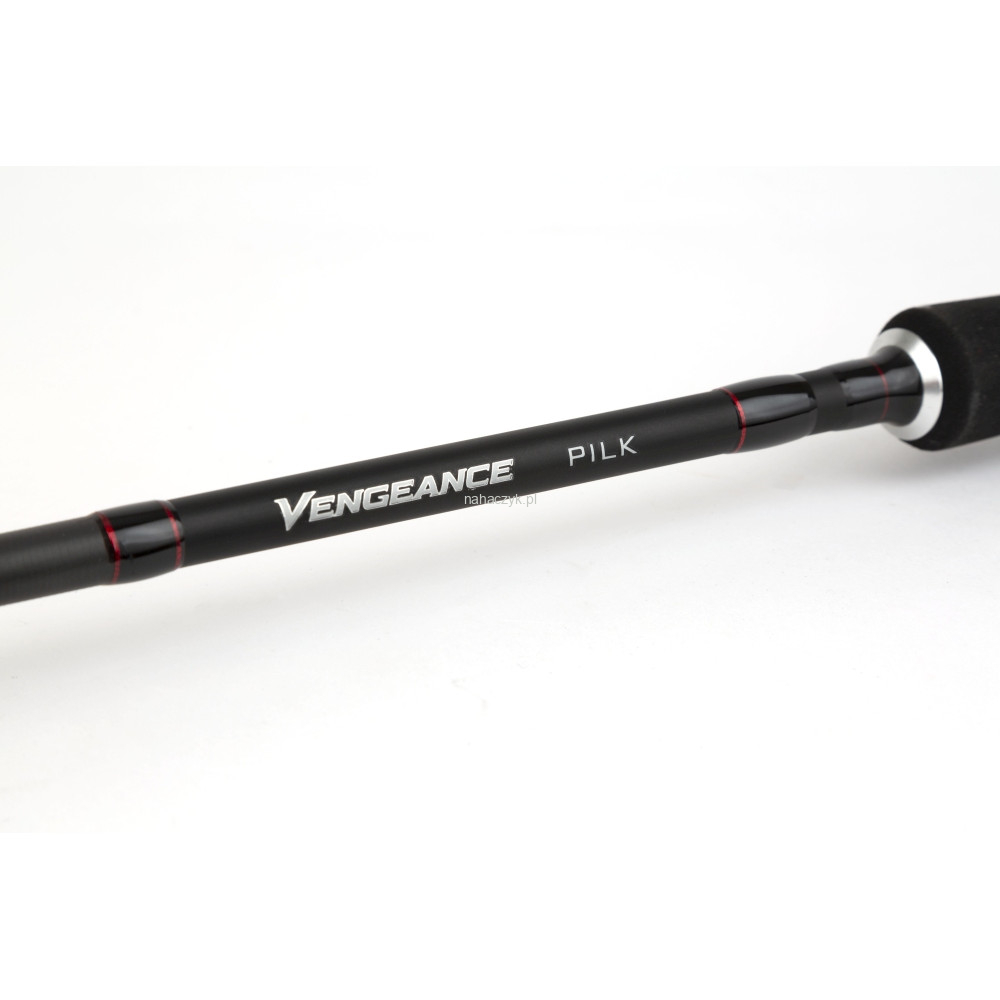 Rod Shimano Vengeance Pilk 2,40m 100-200g - podstawowa gama produktów zaprojektowana do połowów dorsza, ryb węglowych i małego halibuta w wodach Europy Północnej. Zbudowane na potężnym umiarkowanie szybkim działaniu Full Carbon, łączą specjalistyczny design z doskonałą przystępnością. Jeśli szukasz wędki, aby od czasu do czasu łowić duże dorycze, ryby węglowe lub halibut w głębokich wodach północnej Europy, Vengeance Pilk oferuje świetne rozwiązanie. Dzięki wiodącej wartości klasy, niedrogi Vengeance Pilk ma wszystkie prawidłowe atrybuty, aby umożliwić uzyskanie maksymalnych wyników z wędkarstwa lub podczas korzystania z ciężkich przynęt. Ciężkie, umiarkowane szybkie działanie pozwala uzyskać wiele działań w przynętach, jednocześnie mając solidną moc, aby naprawdę pochylić się nad rybami, gdy musisz wywierać maksymalną moc.