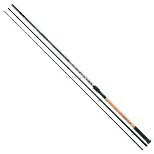 Trzyczęściowa wędka odległościowa o akcji parabolicznej. Blank wykonany z węgla S.H.M.R. Wzmacniane złącza elementów, przelotki S-SiC, rękojeść wykończona naturalnym korkiem oraz pianką EVA, uchwyt kołowrotka pokryty przyjemną w dotyku gumą, prążkowane zakończenie dolnika z pianki EVA zapewnia pewny chwyt.