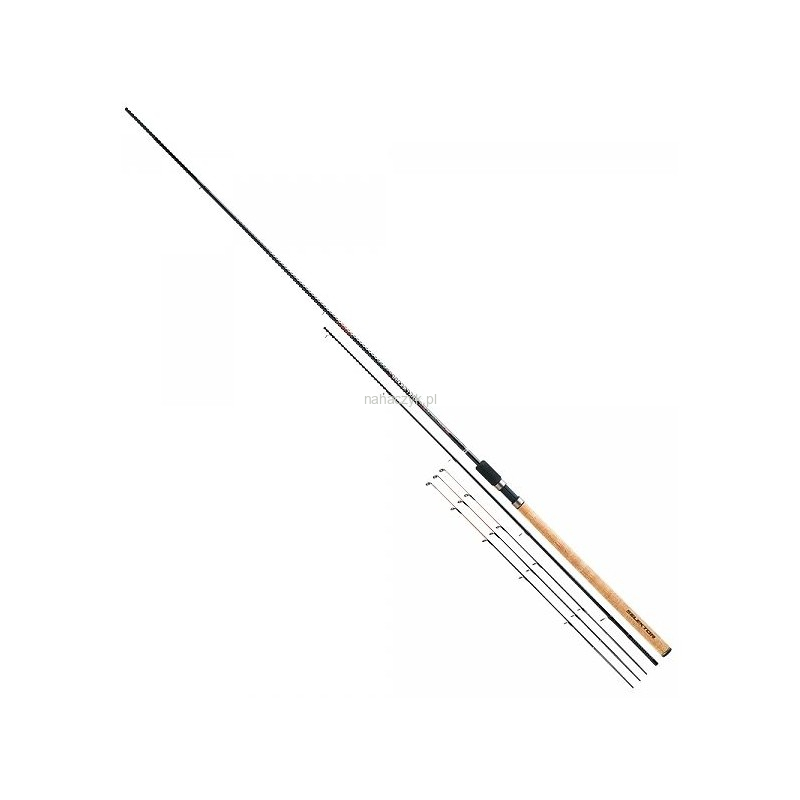 Feeder o szybkiej akcji, zaprojektowany do precyzyjnych rzutów na średni dystans koszykami method feeder do 90 g. Blank wykonany z wytrzymałego węgla S.H.M. Durawall. 3 węglowe szczytówki o różnej akcji, każda po 60 cm o dobrej czułości. Rękojeść z naturalnego korka i pianki EVA. Złącza elementów wzmacniane oplotem, który zapewnia również pewny chwyt przy składaniu wędki. Mocne przelotki SiC na podwójnej stopce. Skręcany uchwyt kołowrotka, zintegrowany z rękojeścią.