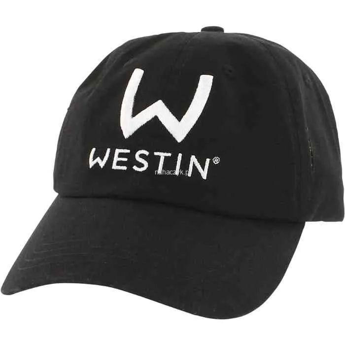Czarna bawełniana czapka. Duże W z logo Westin z przodu, oraz napis Connecting Man and Fish z tyłu.