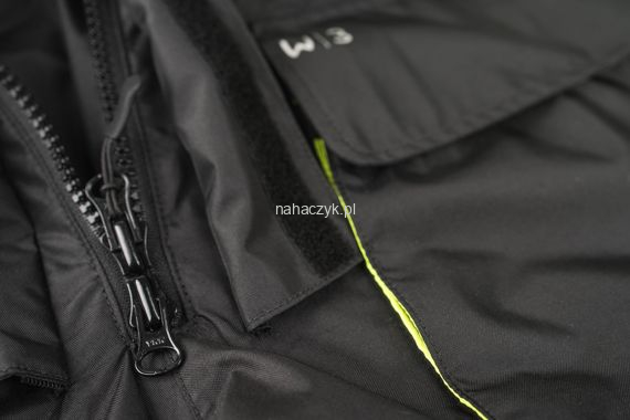 • Kieszeń na piersi z wodoodpornym, jaskrawo żółtym suwakiem
